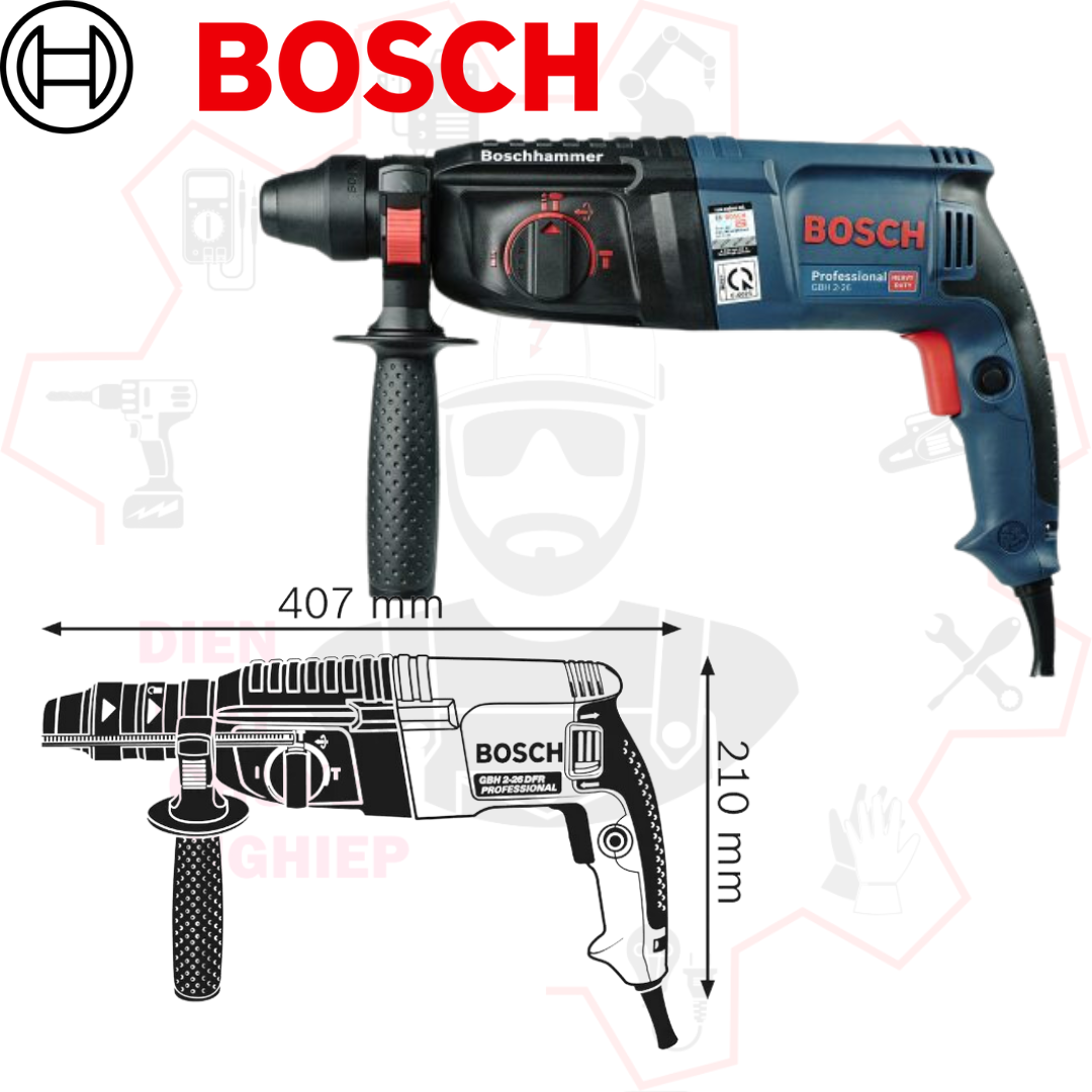 Thiết kế của Bosch GBH 2-26 RE chú trọng vào độ bền bỉ và an toàn:**