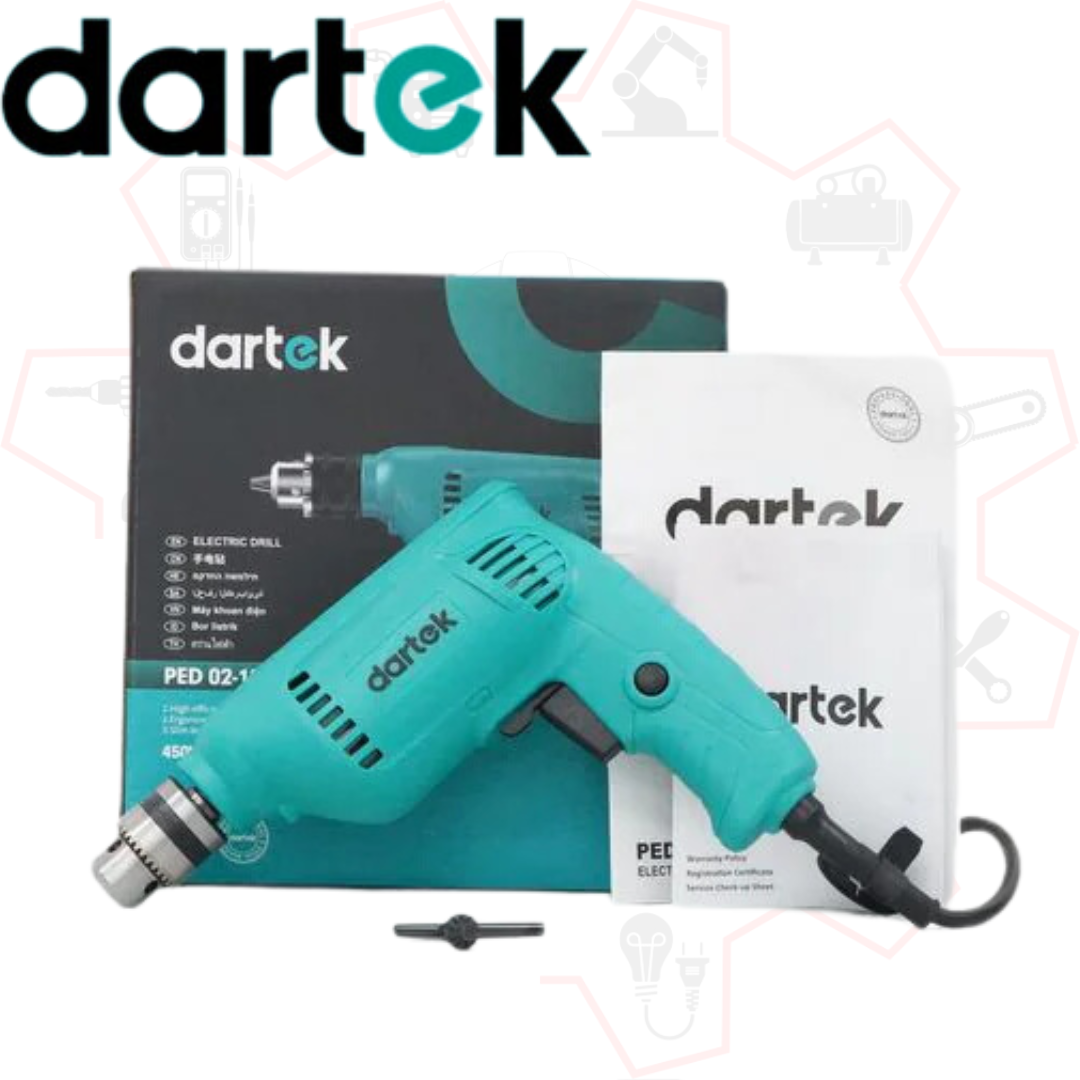 Máy khoan Dartek PED02-10 là sản phẩm được sản xuất bởi thương hiệu Dartek uy tín, được phân phối chính hãng bởi Công ty cổ phần điện máy chuyên nghiệp. Máy được thiết kế mạnh mẽ, đa năng, chuyên dụng cho các công việc khoan lỗ trên gỗ, kim loại, bê tông trong xây dựng, cơ khí, gia công nội thất và nhiều ngành nghề khác.